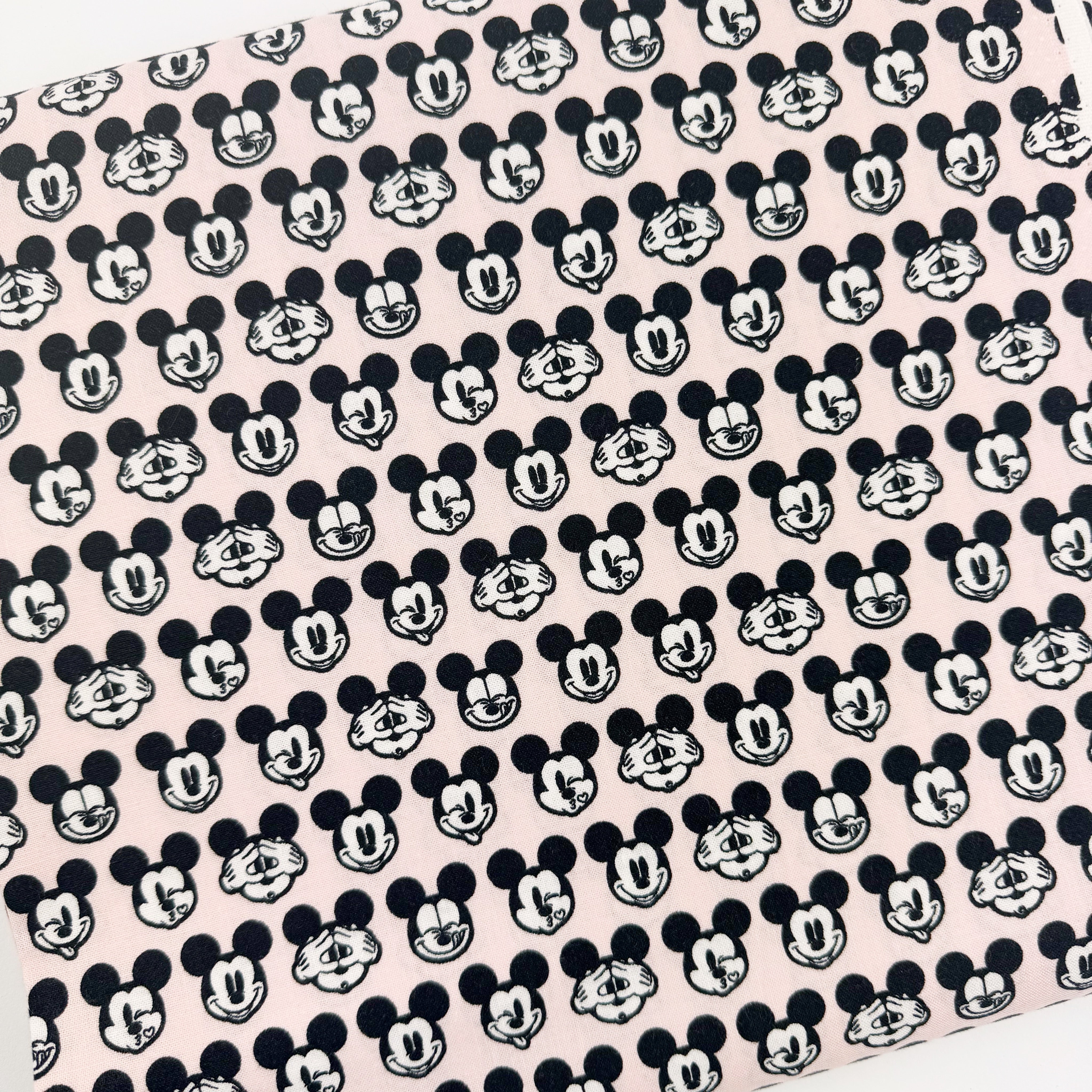 Mickey on pale pink - cotton woven is backordered and will ship as soon as it is back in stock.